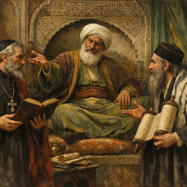 Este texto es un capítulo de exégesis jurídica islámica clásica que analiza, con rigor extremo, las normas para juzgar a la Gente del Libro y a los protegidos (ḏimmīs) bajo gobierno musulmán. Centrándose en las aleyas de la Sura al-Mā'idah, establece un sistema legal escalonado que define cuándo se aplica la ley islámica y cuándo se reconoce la autonomía legal de las minorías, especialmente en materia de matrimonio, contratos y penas. El texto también profundiza en la ley de la retribución (qiṣāṣ) y ofrece una definición jurídica precisa de la incredulidad (kufr), distinguiendo claramente entre apostasía y pecado grave, en una refutación implícita de las simplificaciones extremistas. Constituye un tratado fundamental sobre pluralismo legal y soberanía islámica en una sociedad multi-religiosa.